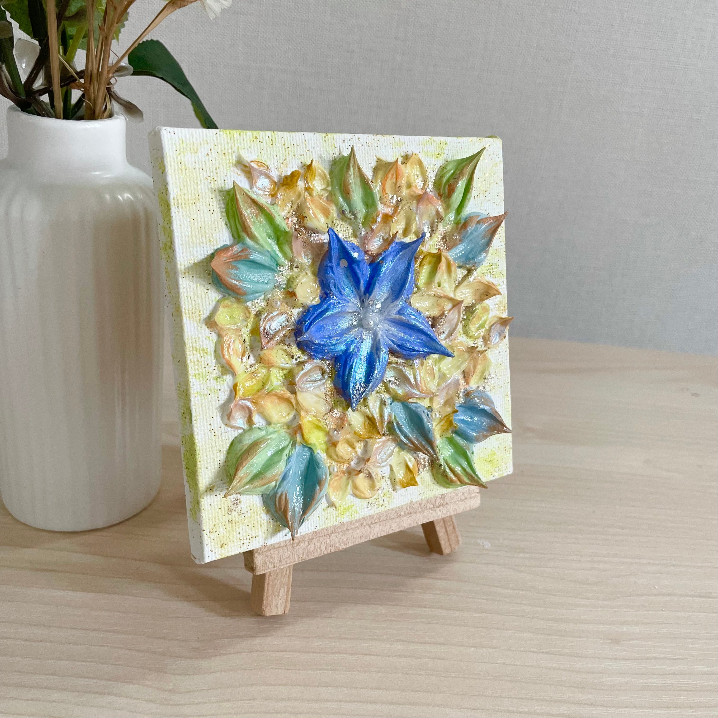 「蒼と金のかけら」 10㎝ テクスチャーアート 金木犀 秋のインテリア