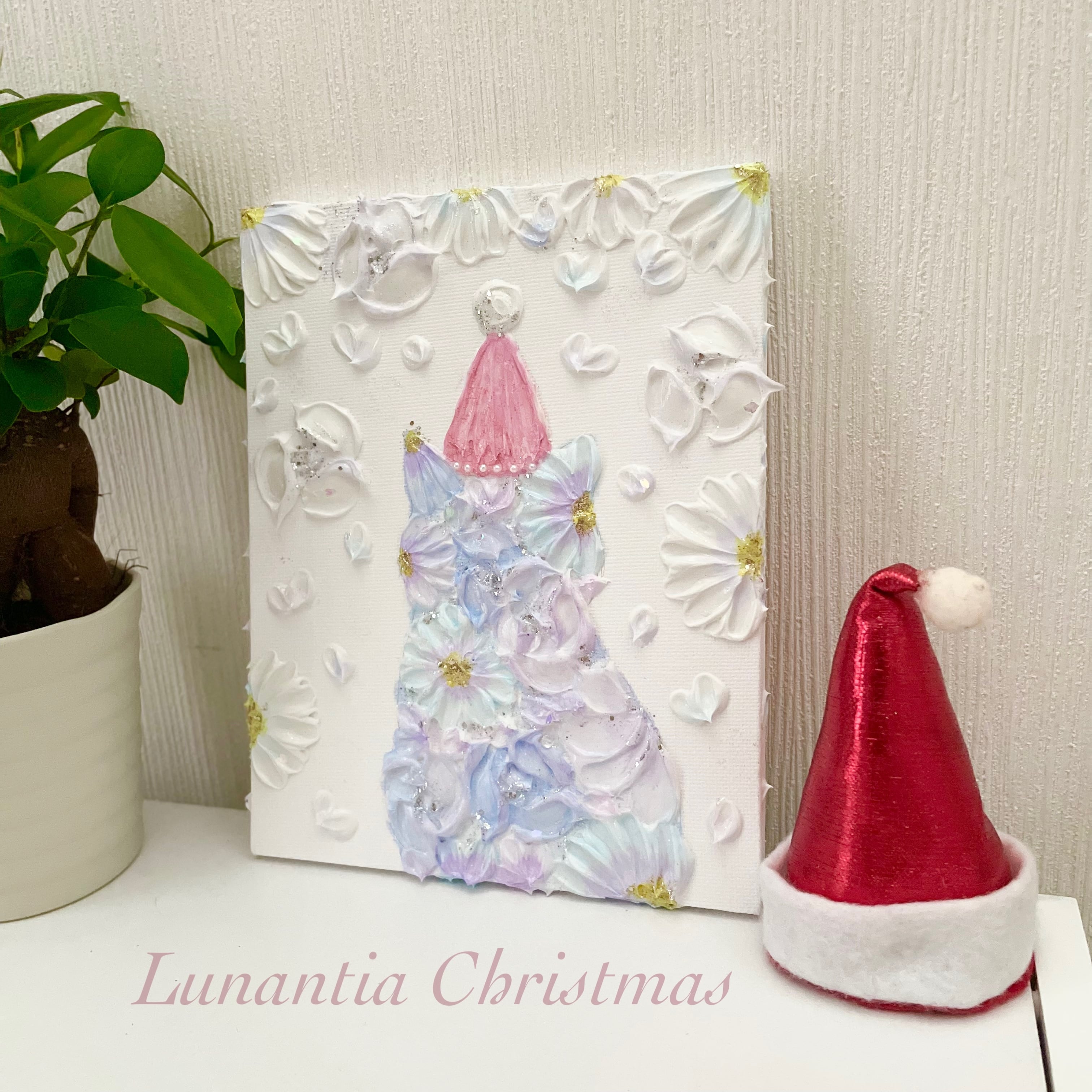「ねこサンタ」 18×14㎝ テクスチャーアート 花猫 クリスマス限定