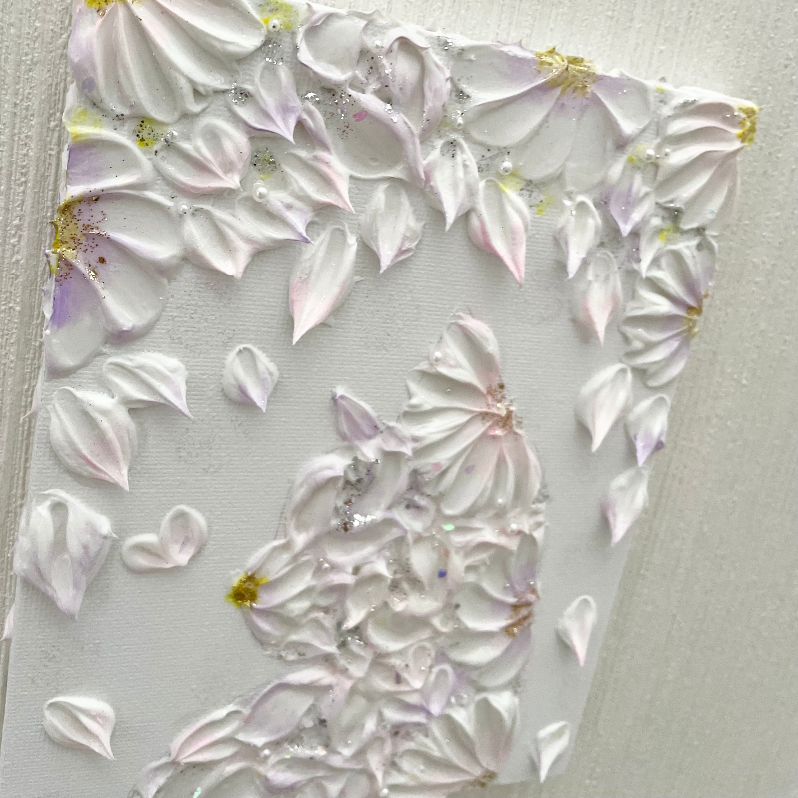 「白猫さん」 18×14㎝ テクスチャーアート 花猫 猫好きギフト
