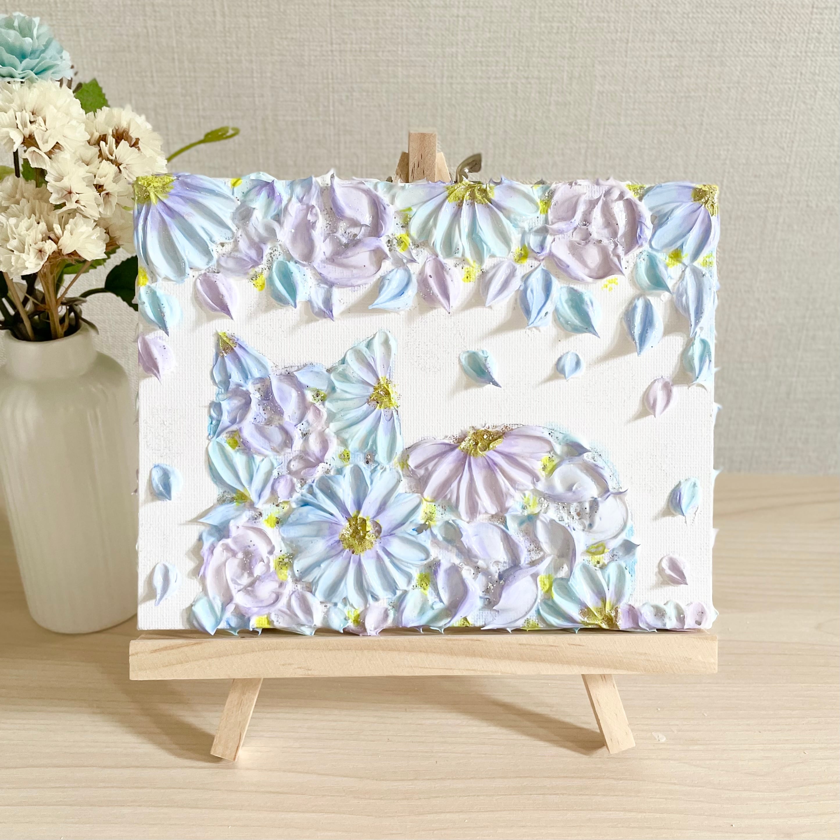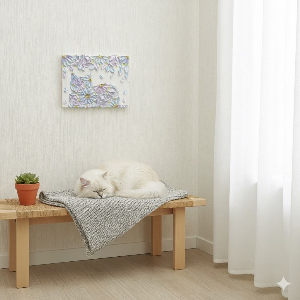 「くつろぎの香箱座り」 18×14㎝ 花猫 テクスチャーアート 猫好きギフト