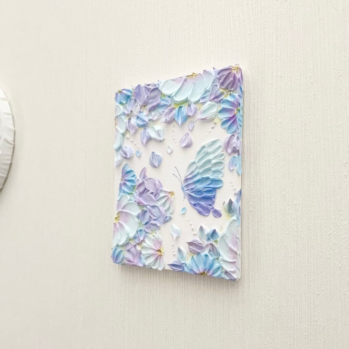 「ひとひらのとき」 18×14㎝ テクスチャーアート 花猫 壁掛けインテリア