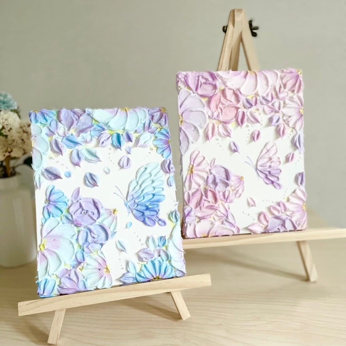 こちらの作品は「張りキャンバス仕上げ」ですので、そのまま壁に飾っていただけます。軽量のため、画鋲やピン、壁用フックを使えば簡単に取り付け可能です。