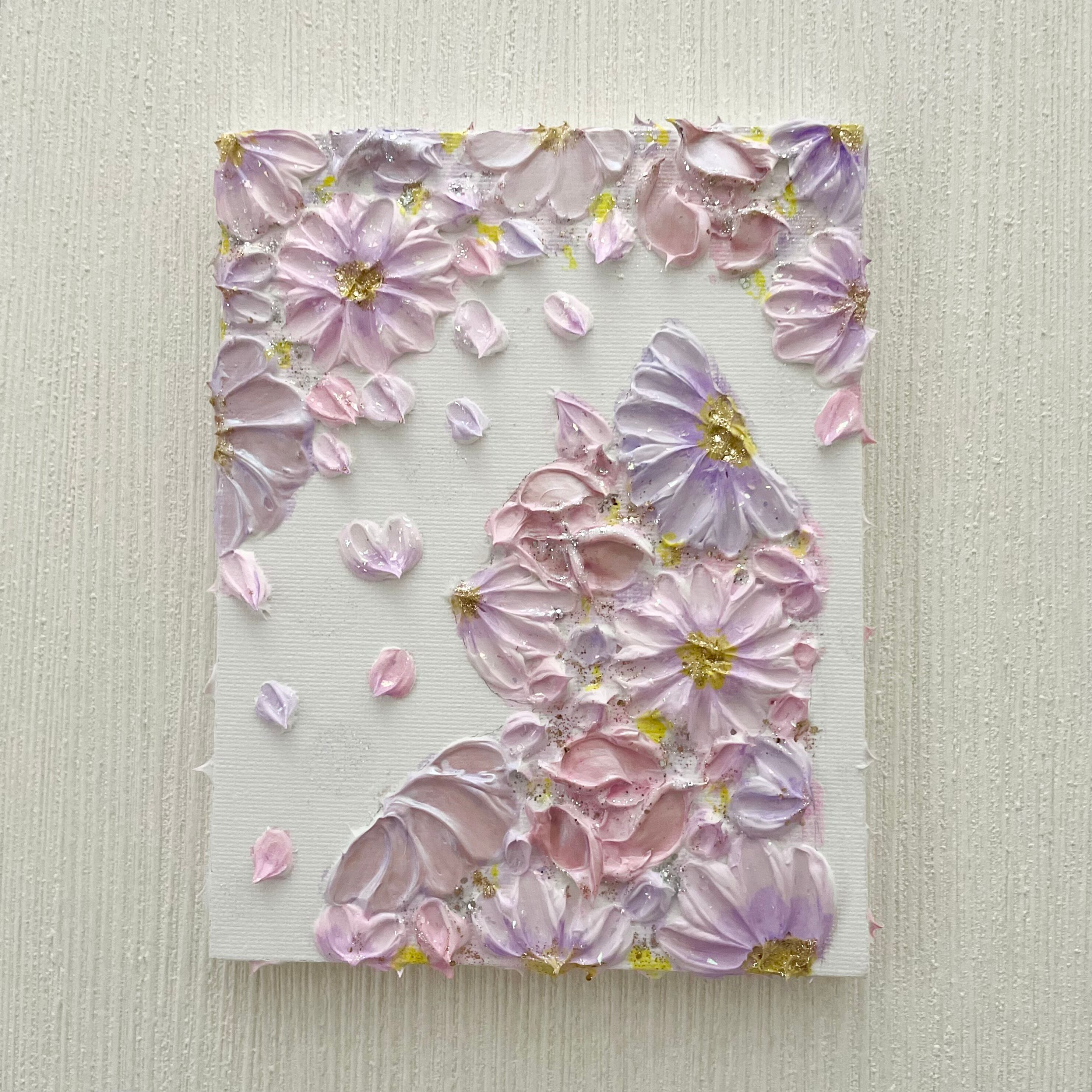 ❀ ふんわりとしたコスモス色の花に包まれ、振り返る仔猫のしぐさを切り取ったF0サイズの作品。小さなキャンバスでも優しい存在感があり、秋の穏やかな雰囲気をお部屋にそっと添えます。猫や花を愛する方へのギフトにもぴったりです。