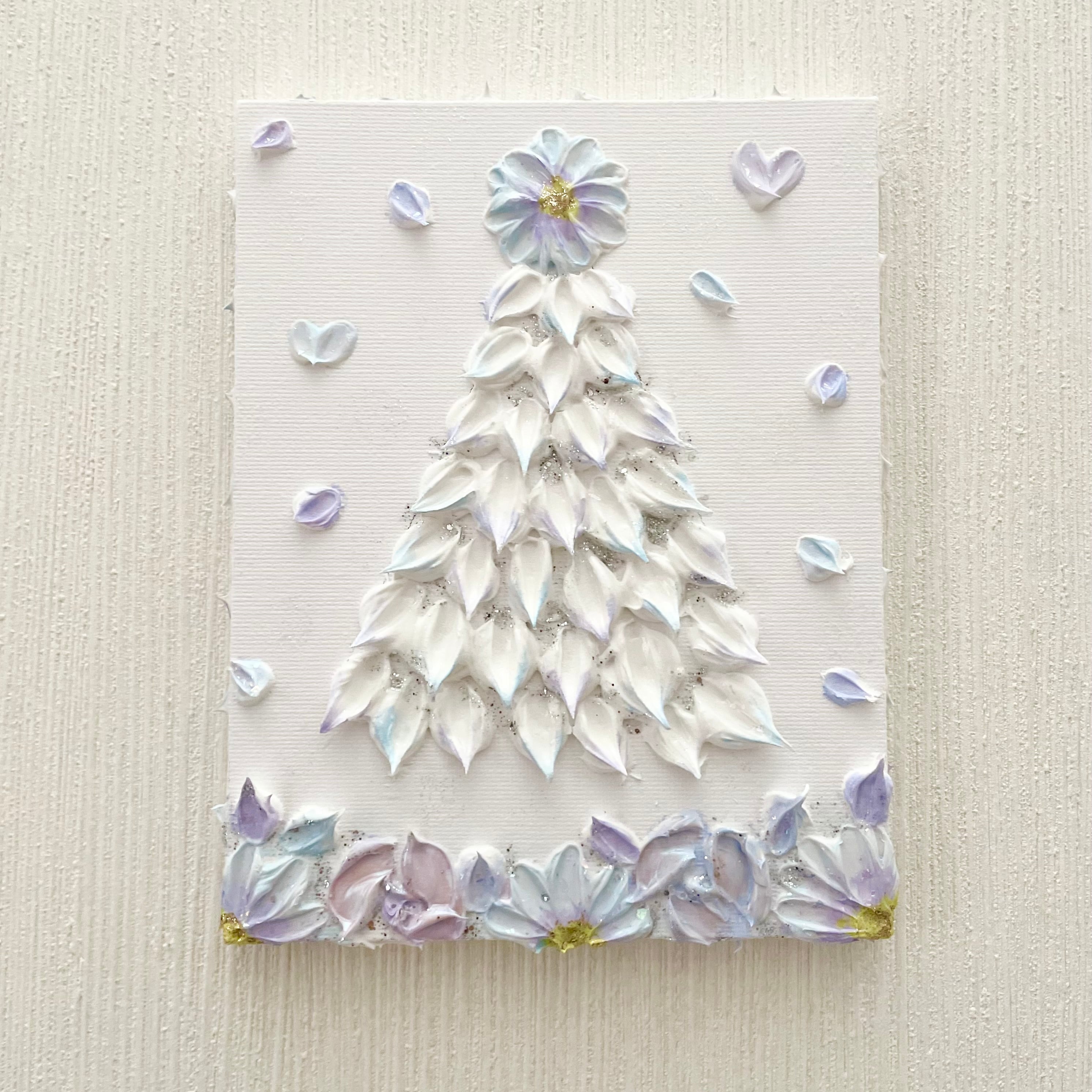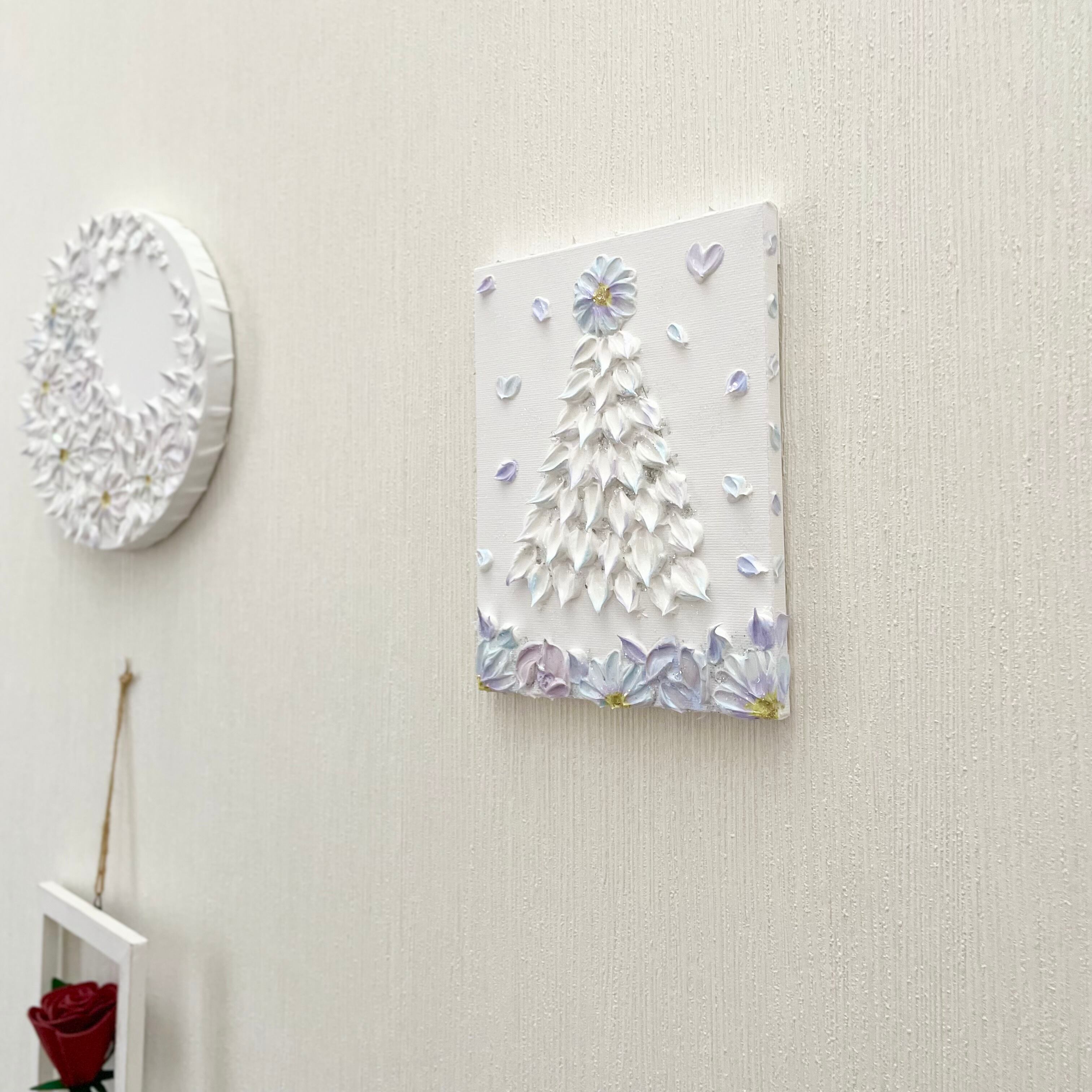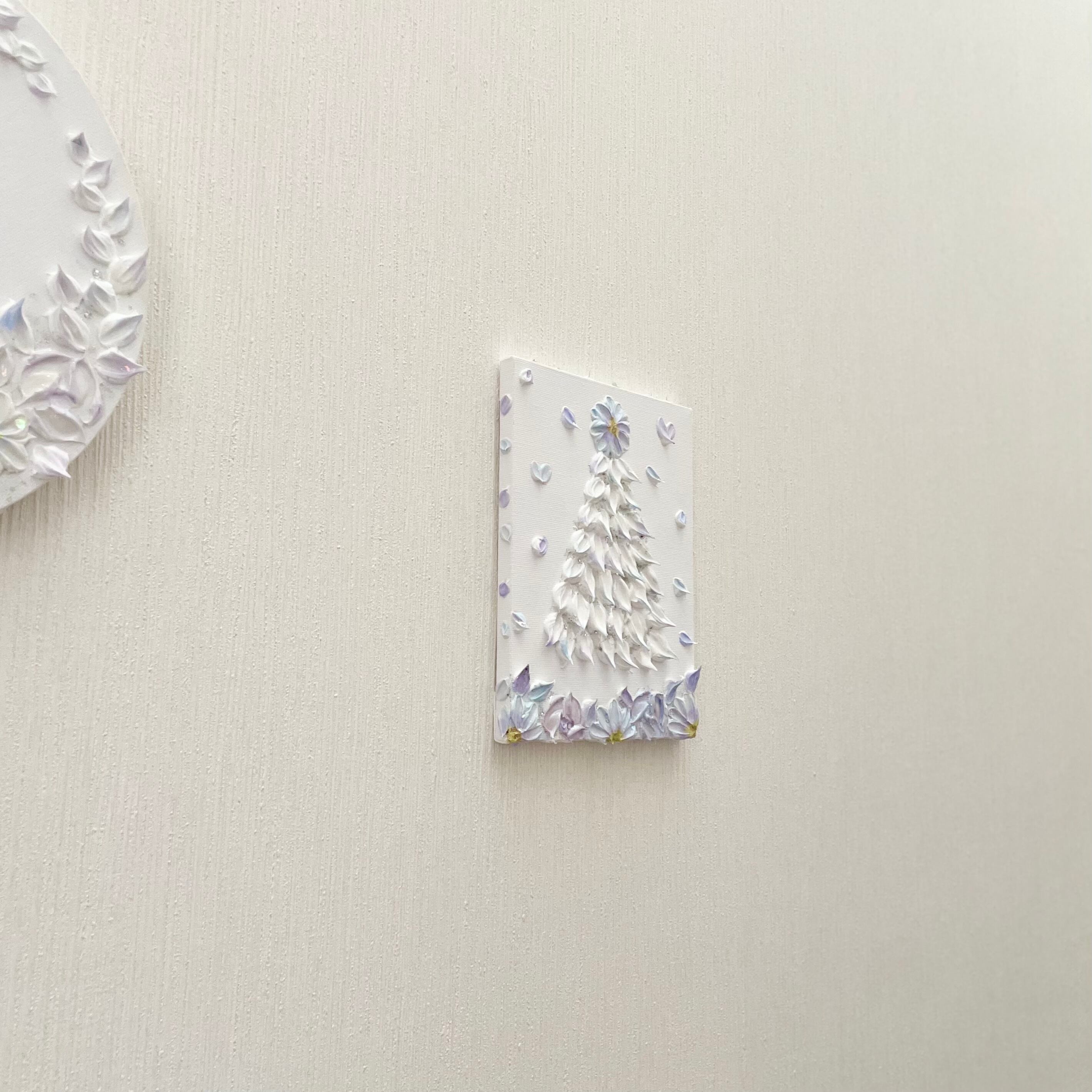 「冬咲の樹」 18×14㎝ テクスチャーアート 花 クリスマス 壁掛けインテリア