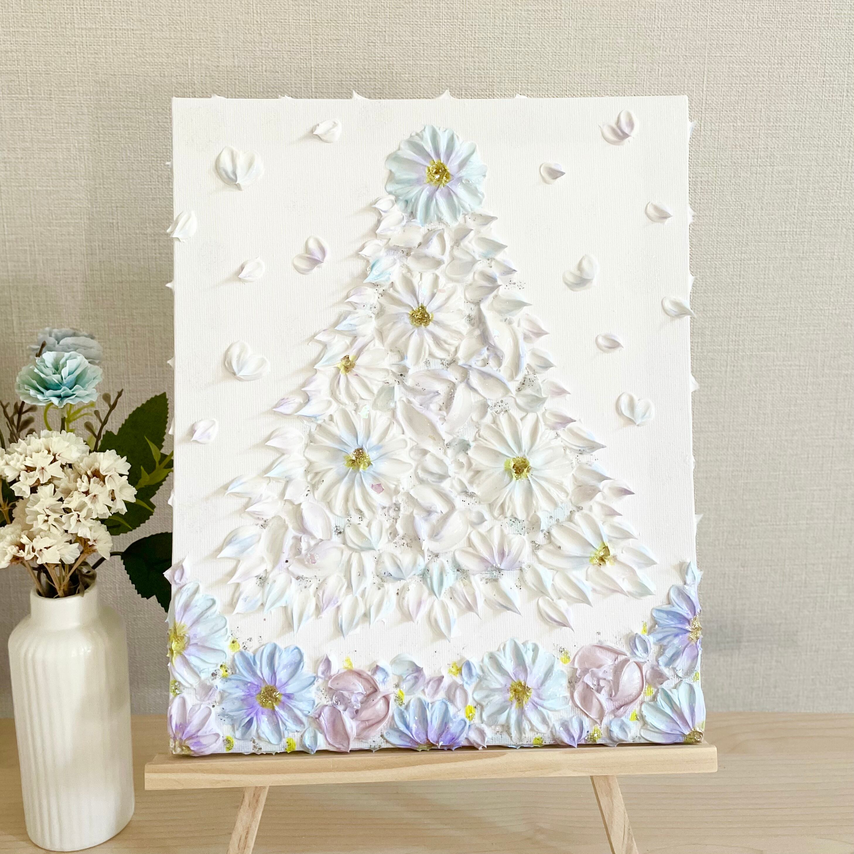 「雪花の樹」 27.3×22㎝ テクスチャーアート 花 クリスマス 壁掛け