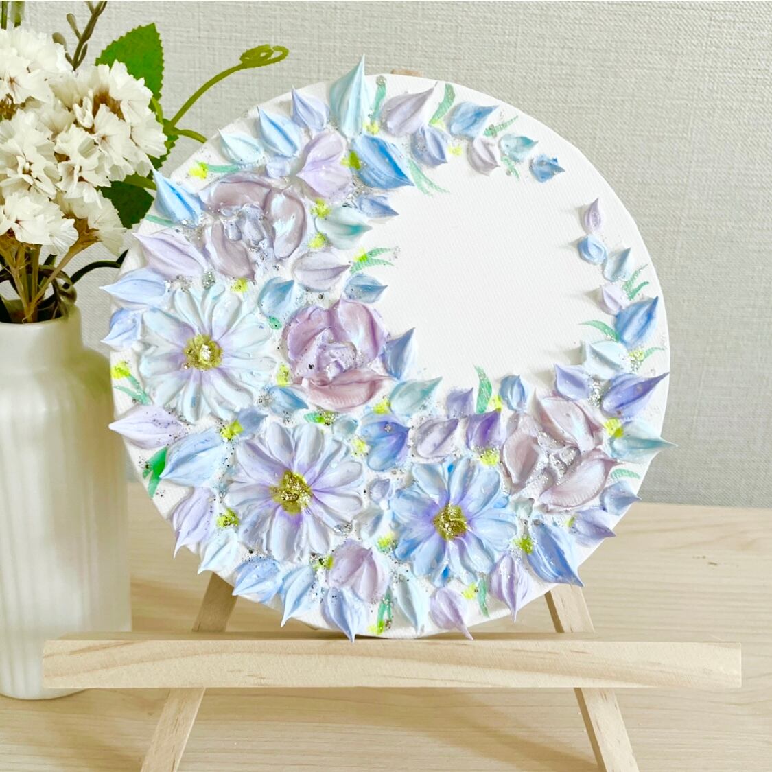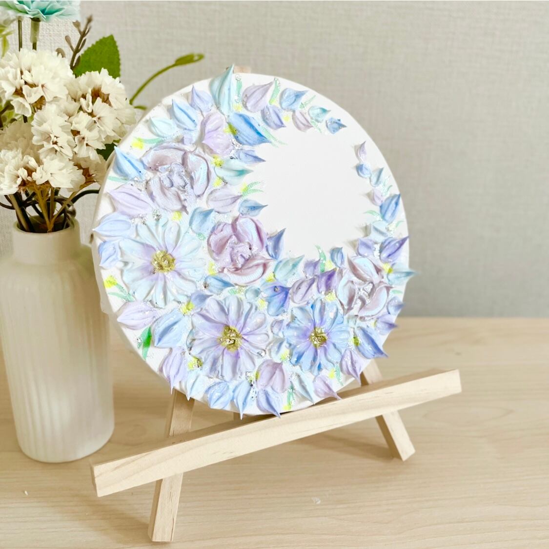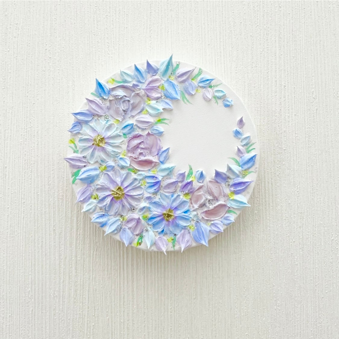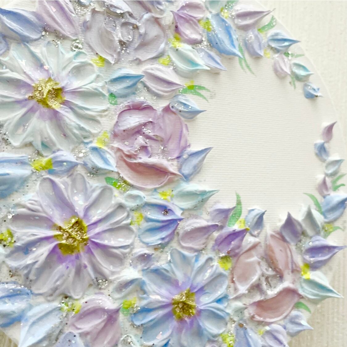 「満開の月環(つきわ)」 15㎝ 三日月リース テクスチャーアート 壁掛け