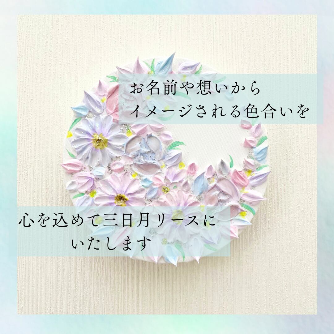 ❀ お名前に「月」が入っている方や、色・お花に意味を持たれる方にご縁のある、世界にひとつだけの三日月リースです。