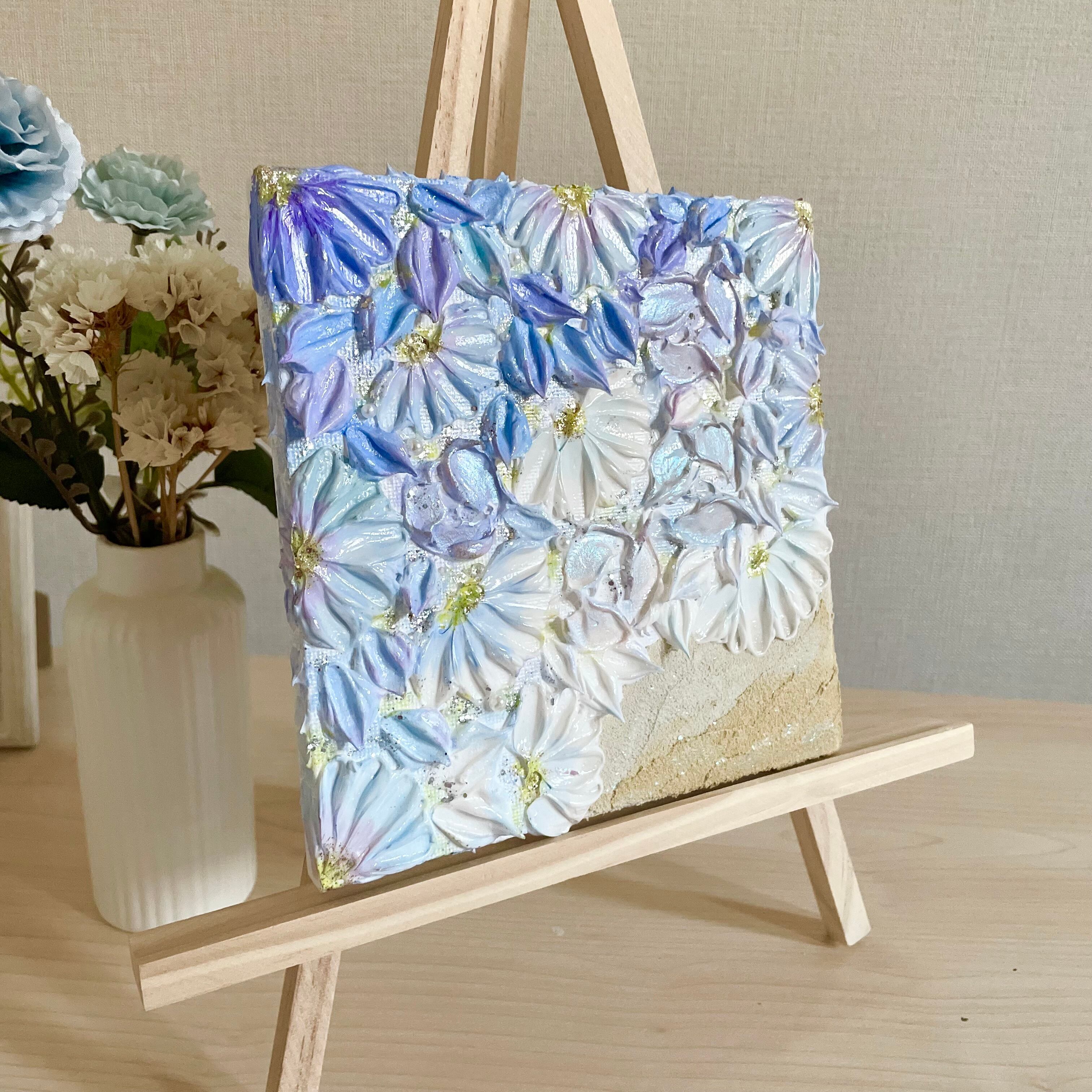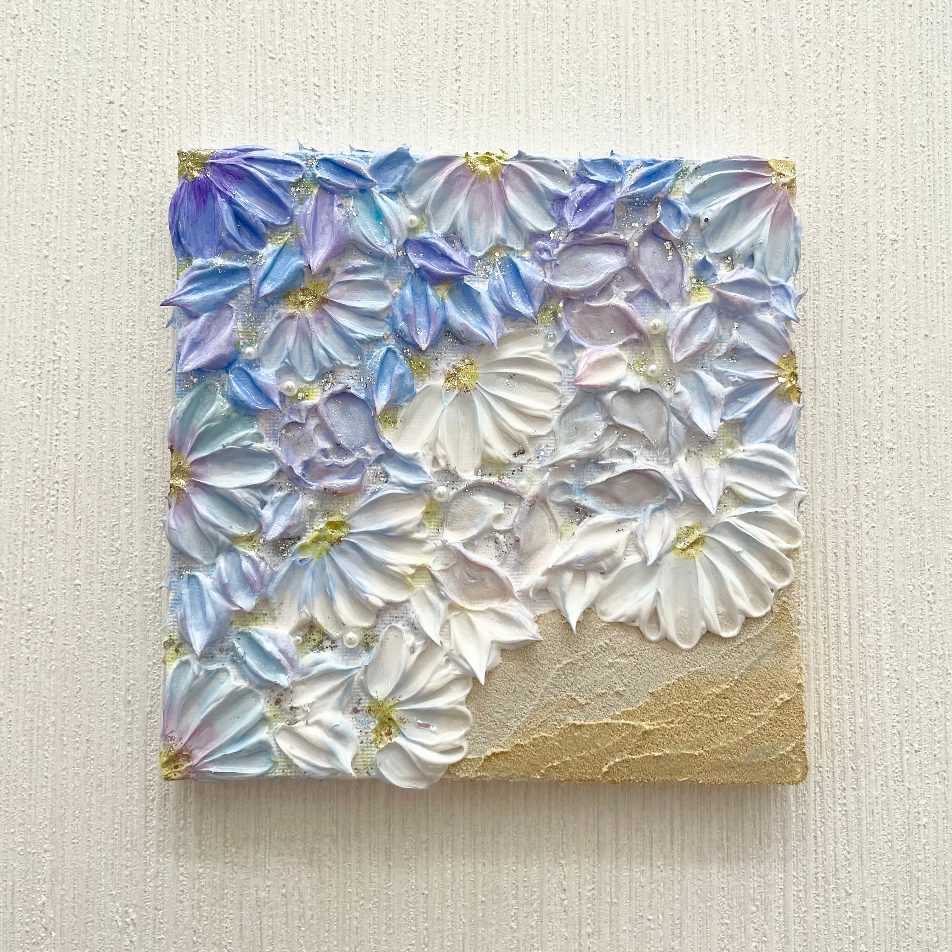 【サイズ変更可能】「花海」 15㎝ テクスチャーアート 壁掛けインテリア 海のアート