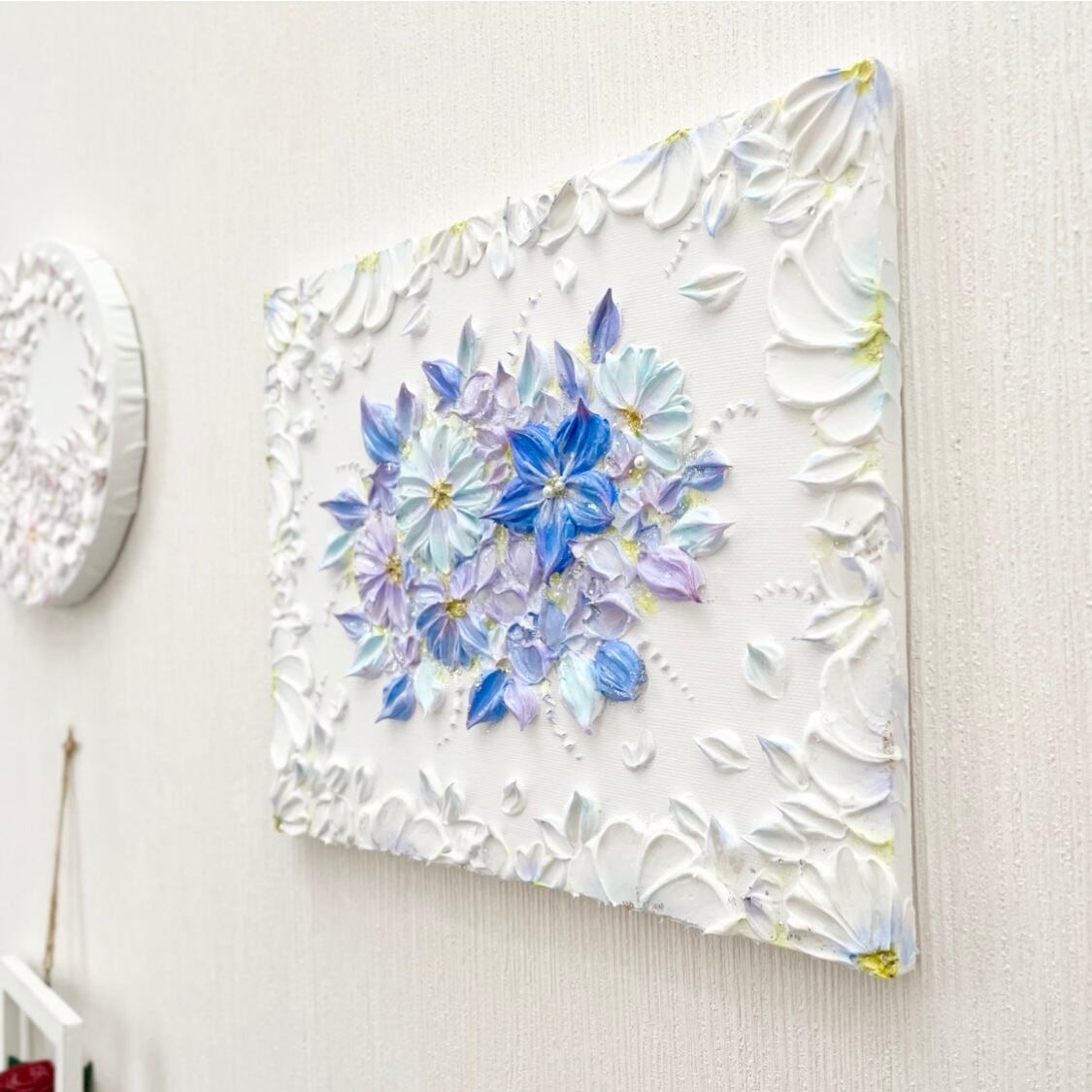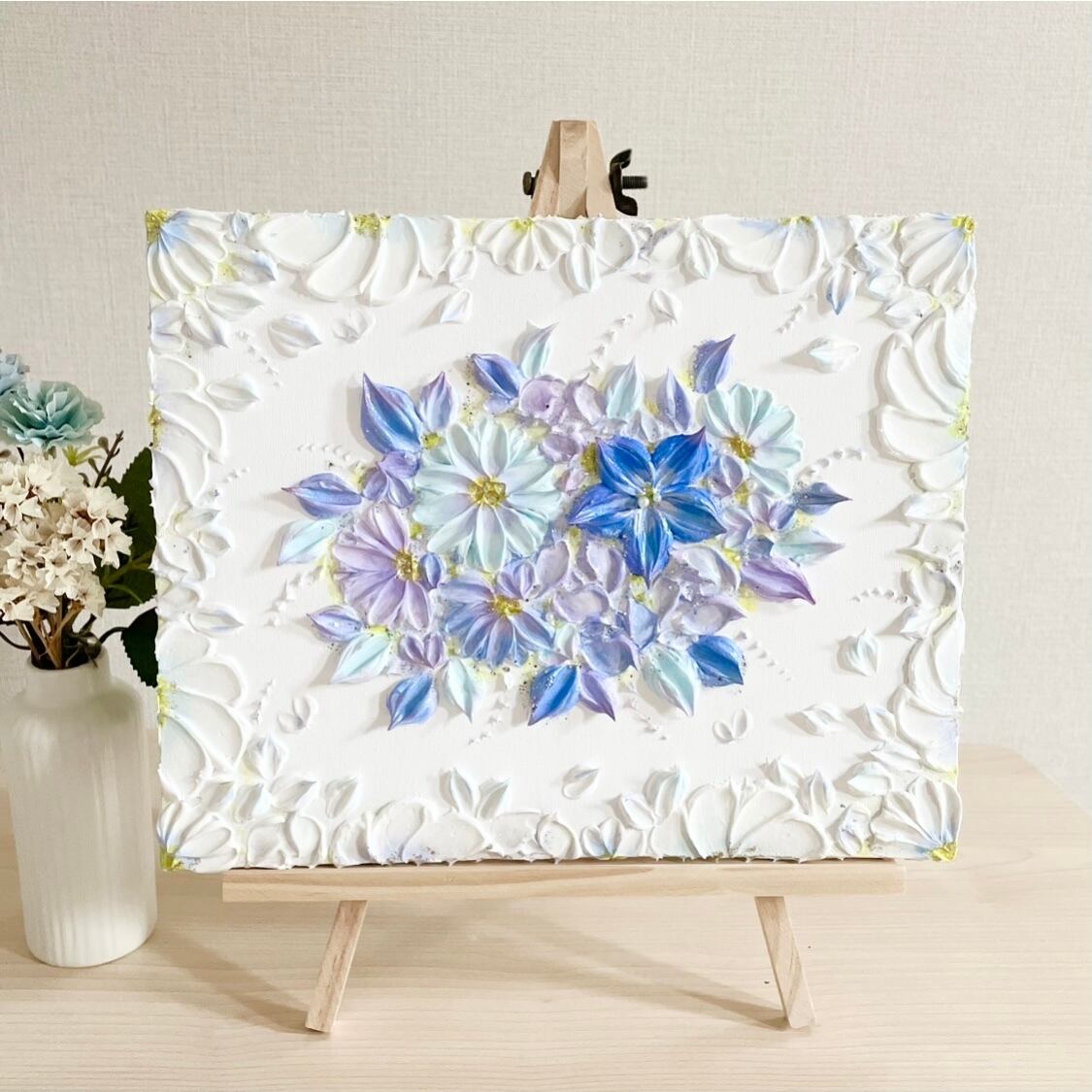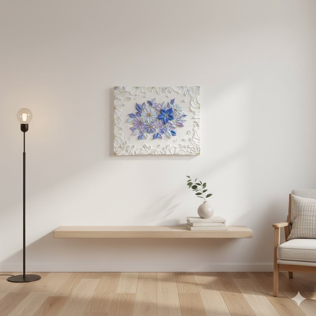 【受注制作】「瑠璃の彩」 27.3×22㎝ 花のテクスチャーアート 壁掛けインテリア