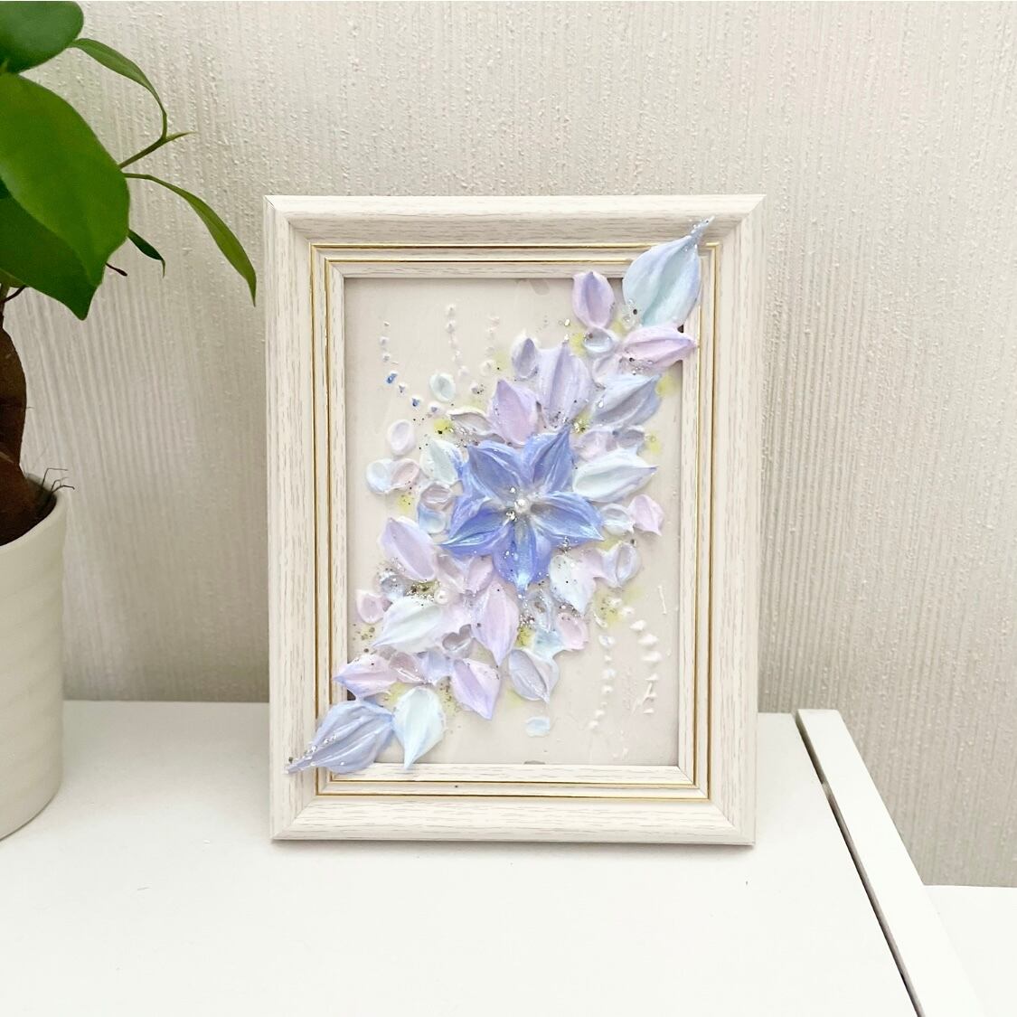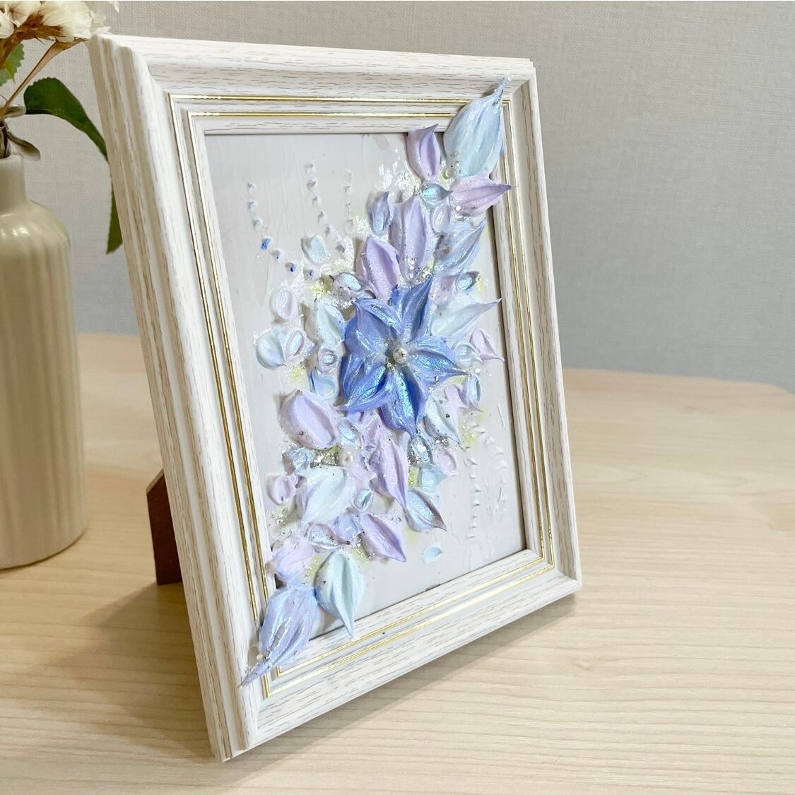 「瑠璃の流れ」 16×12㎝ テクスチャーアート 花のインテリア 引っ越し祝い 玄関やトイレのインテリアに