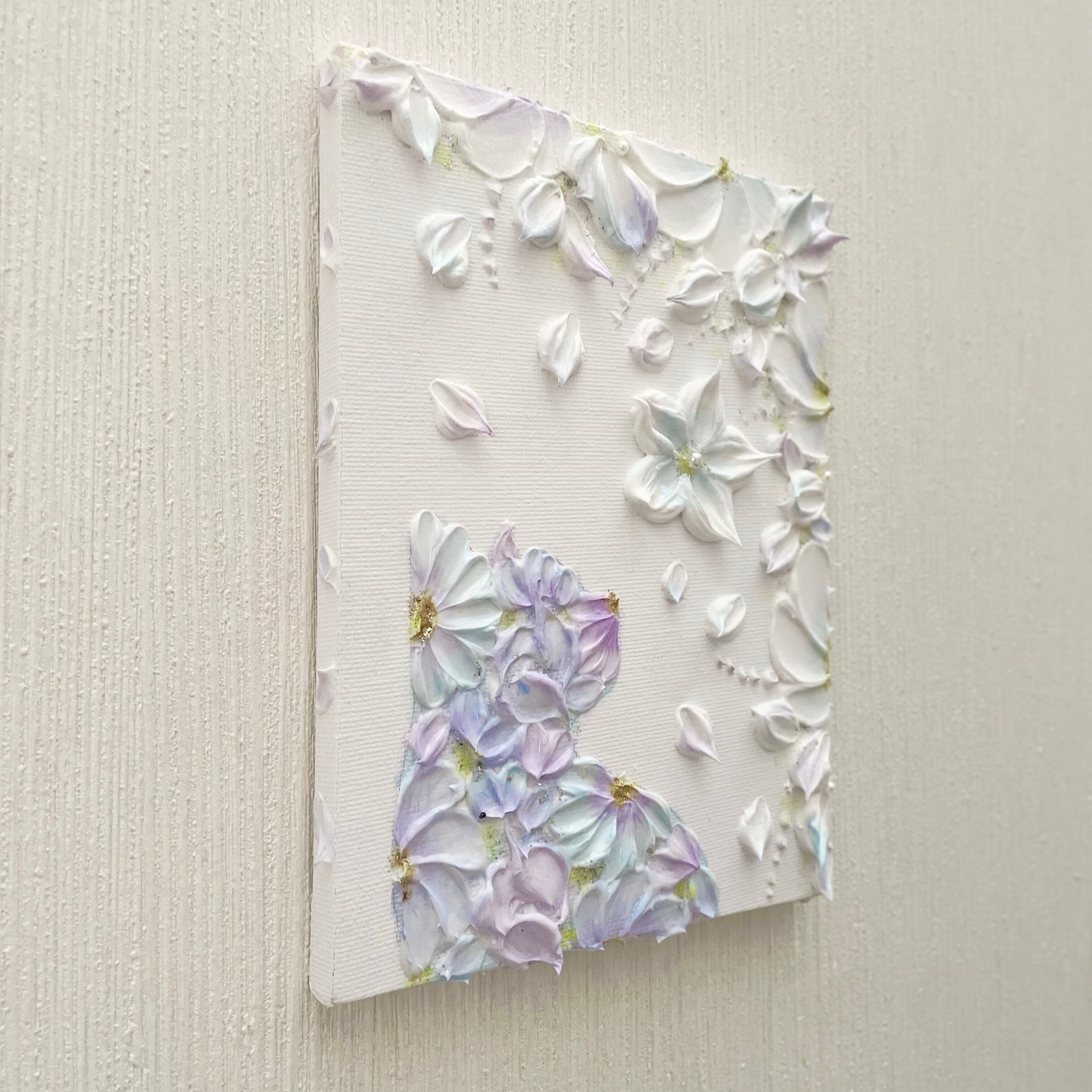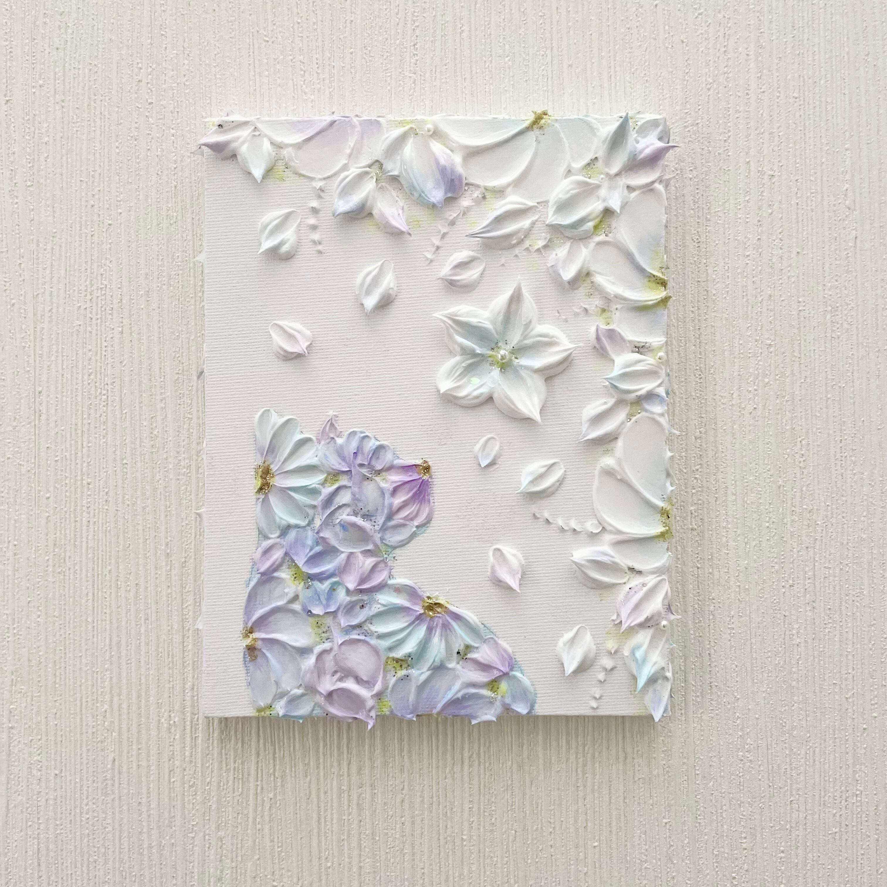 「雪猫」 18×14㎝ テクスチャーアート 花猫 猫好きギフト