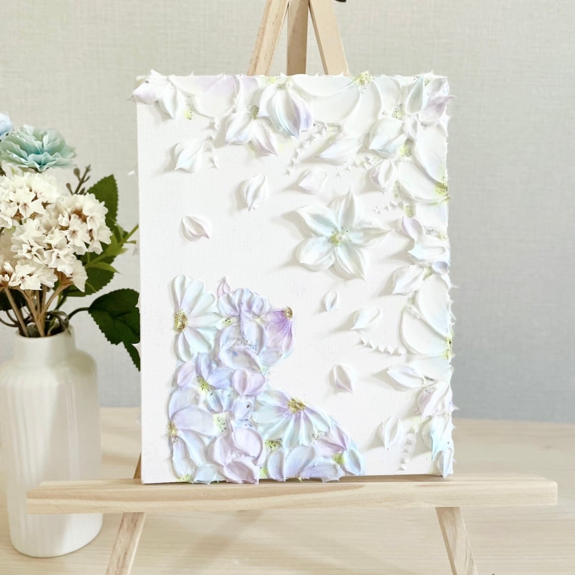 おもにモデリングペースト、アクリル絵の具、クリスタルメディウムを使用しています。