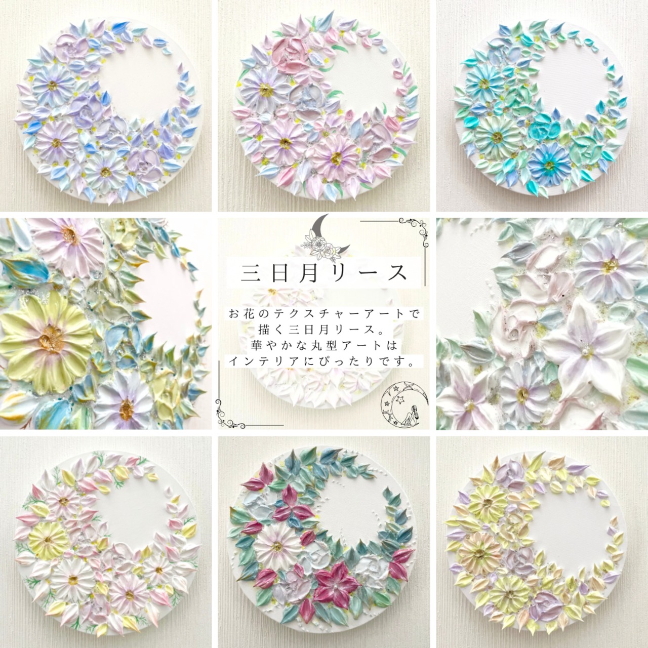 「淡雪の月環」 20㎝ テクスチャーアート 三日月リース