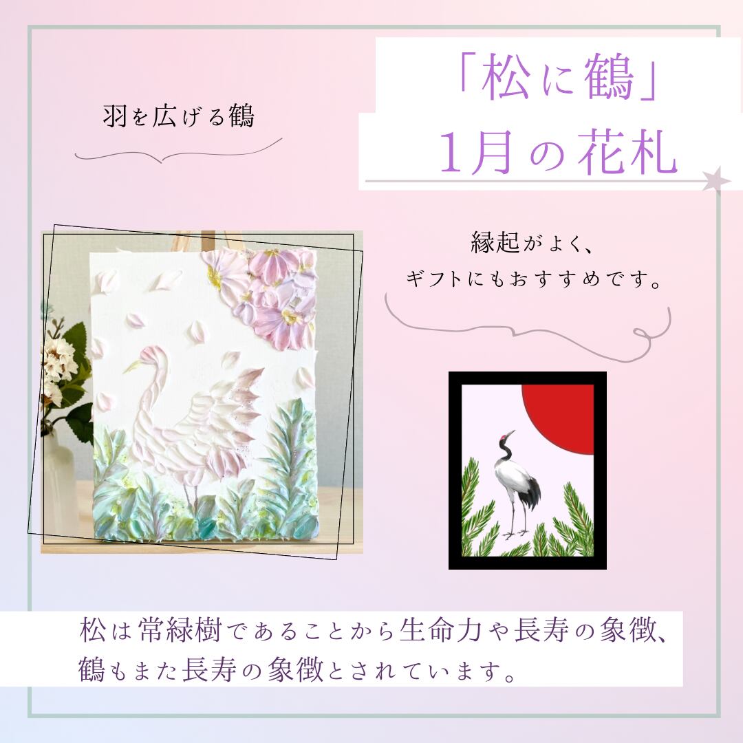 「1月-鶴-」 18×14㎝ テクスチャーアート 花札 誕生月ギフト お正月