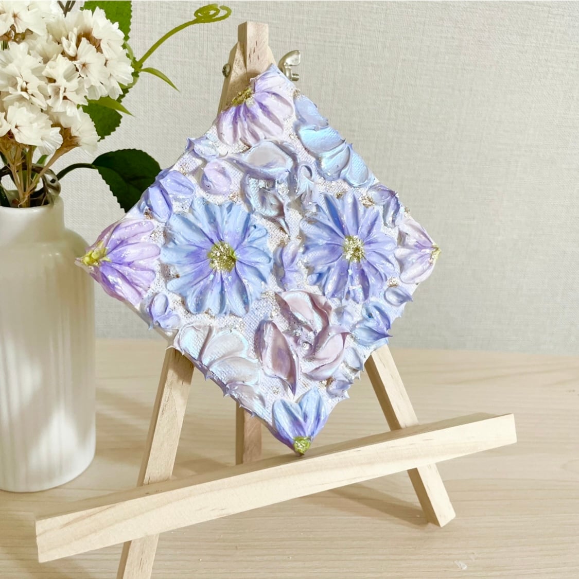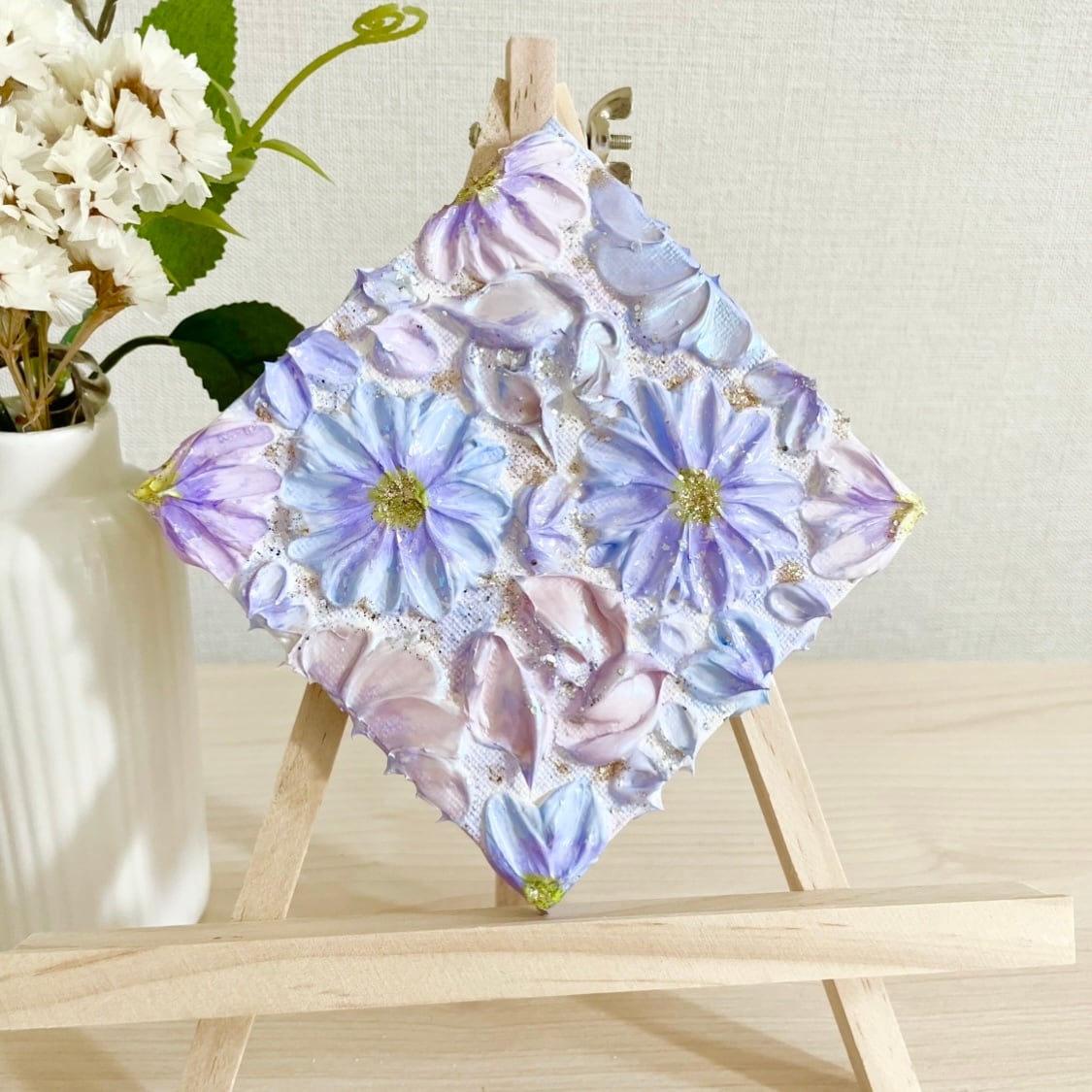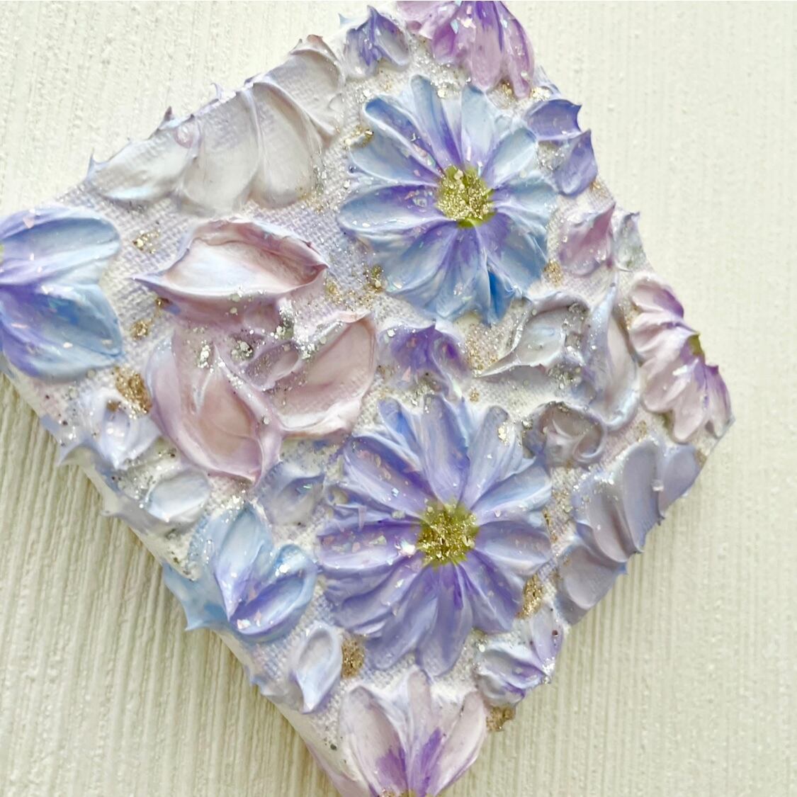 ❀ 青と紫の花々が静かに咲く、小さな世界。小ぶりのキャンバスに、穏やかな空気を閉じ込めました。