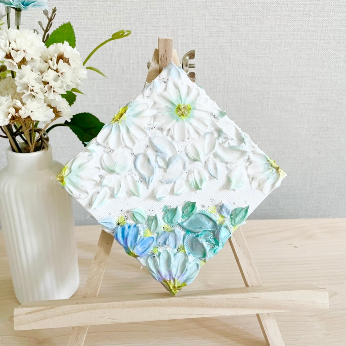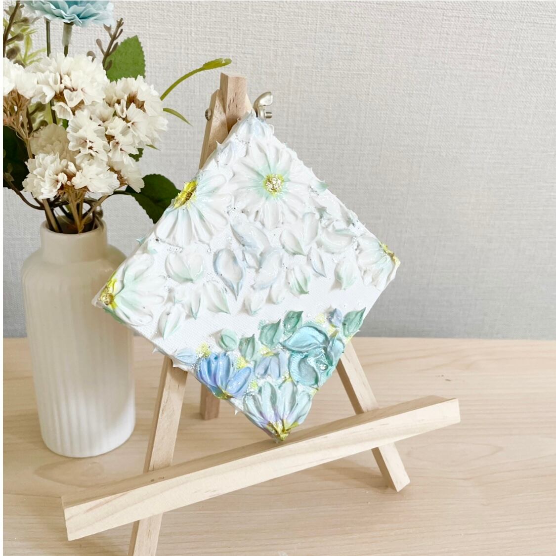 「息吹の庭」 10㎝ テクスチャーアート 花 ミニインテリア 壁掛け グリーンインテリア