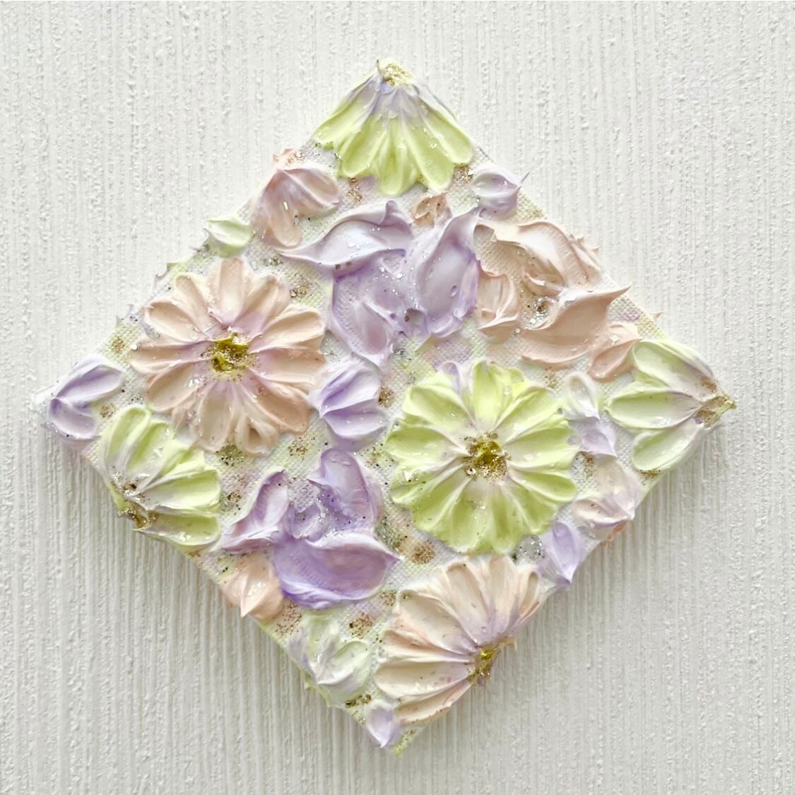 「実りの庭」 10㎝ テクスチャーアート 花のインテリアアート プチギフト 壁掛けインテリア 北欧インテリア