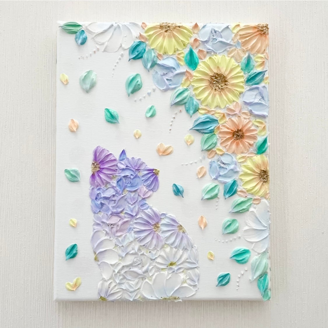 もともとは「向日葵と猫が大好き」というお客様からのオーダーメイド作品として誕生した一枚です。