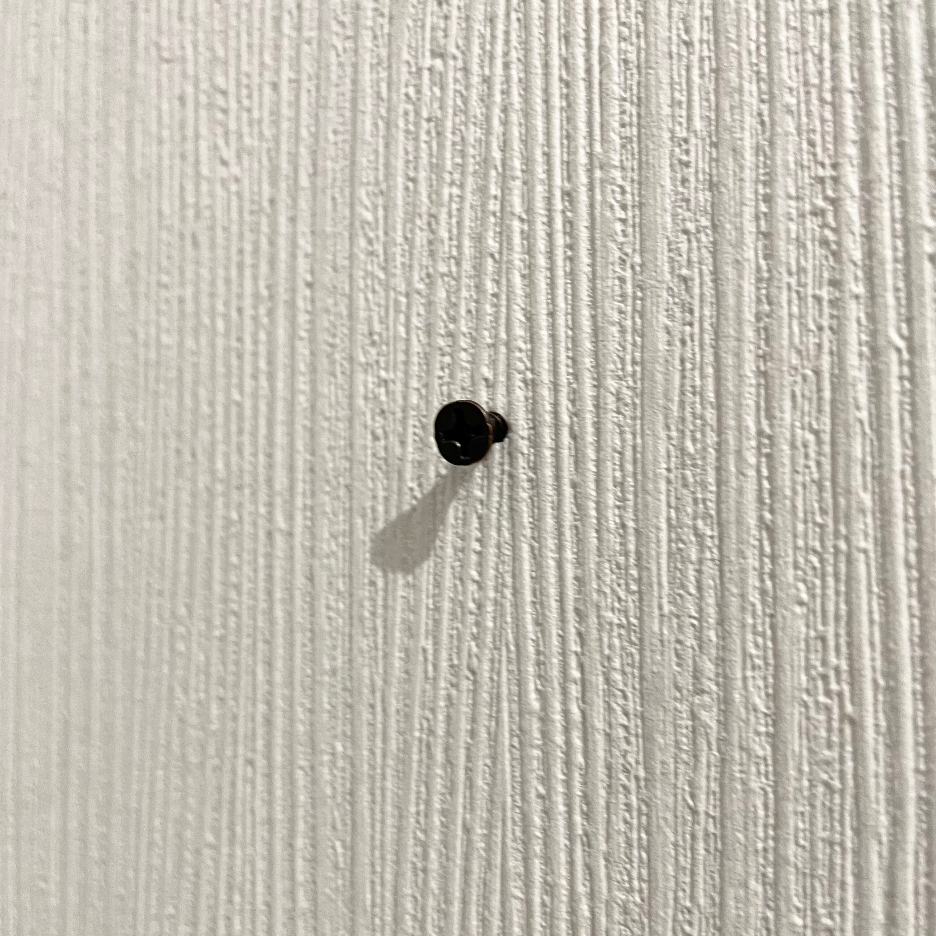 大きめで重さもあるため、三角吊金具と紐をおつけしています。プッシュピンではなく、しっかりとしたネジなどに掛けていただけると安心です。