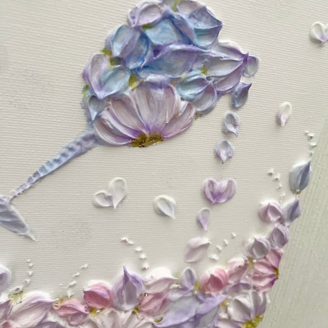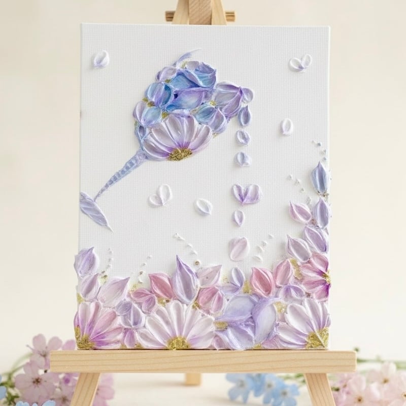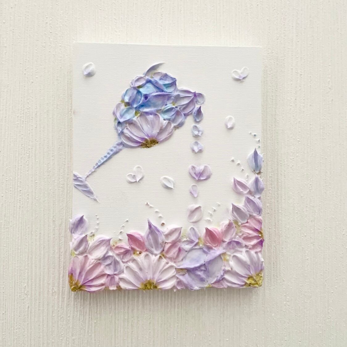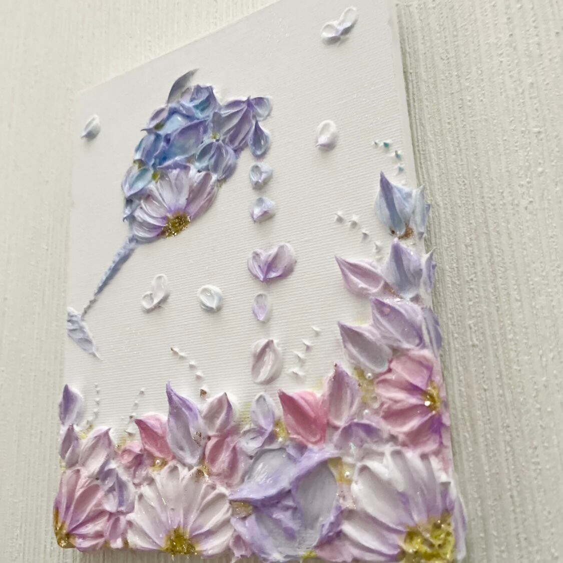 【受注制作】「幸せの連なり」小さめF0サイズ 18×14㎝ 花のテクスチャーアート 引っ越し祝い 結婚祝い