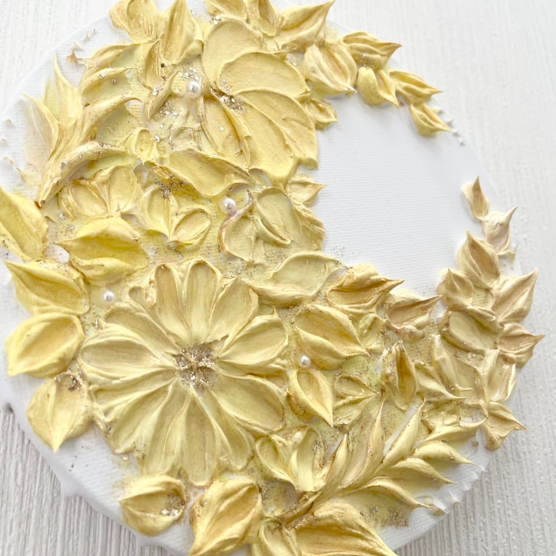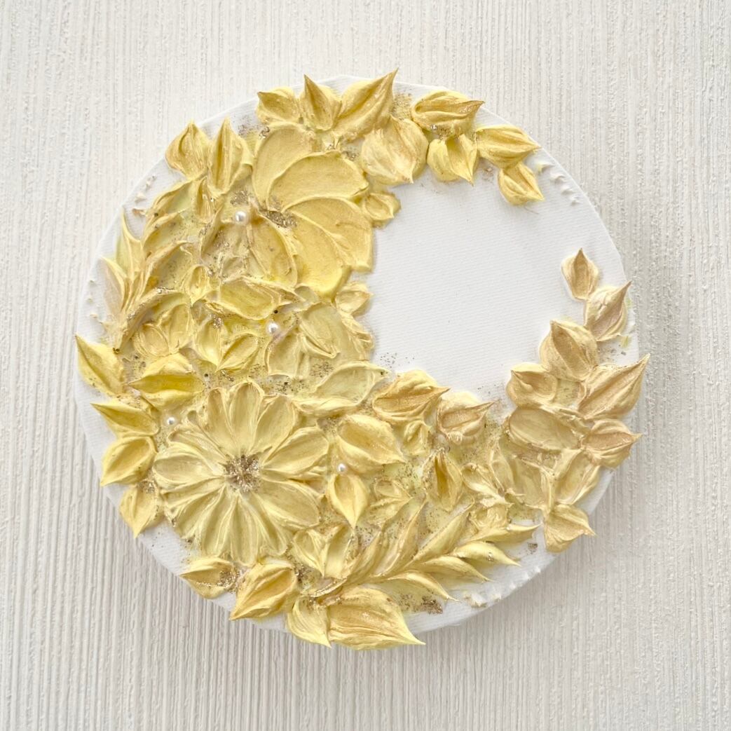 「金の月環」15㎝ 花のテクスチャーアート 三日月リース 引っ越し祝い