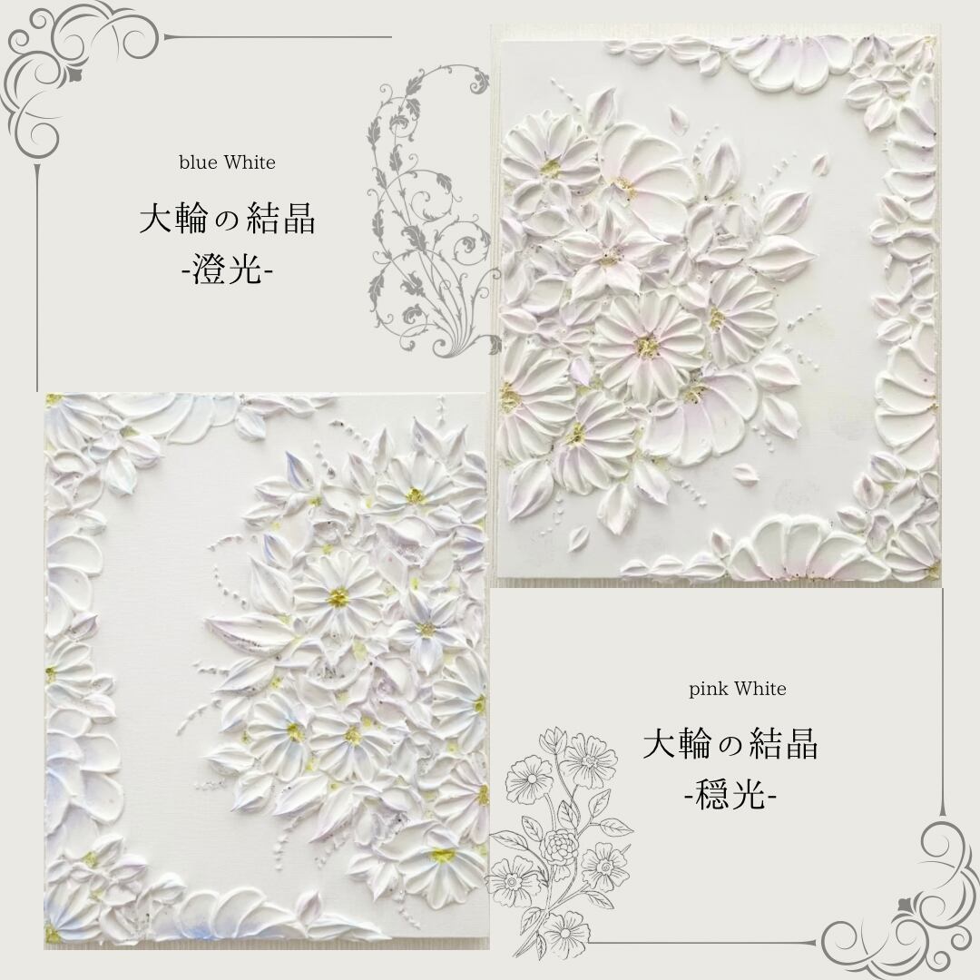 「大輪の結晶-穏光-」27.3×22㎝ 花のテクスチャーアート 壁掛けインテリア