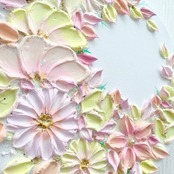 立体的に咲く花々と、角度で表情を変えるラメの煌めきが、省スペースの壁でもパッと一目で印象を残します。