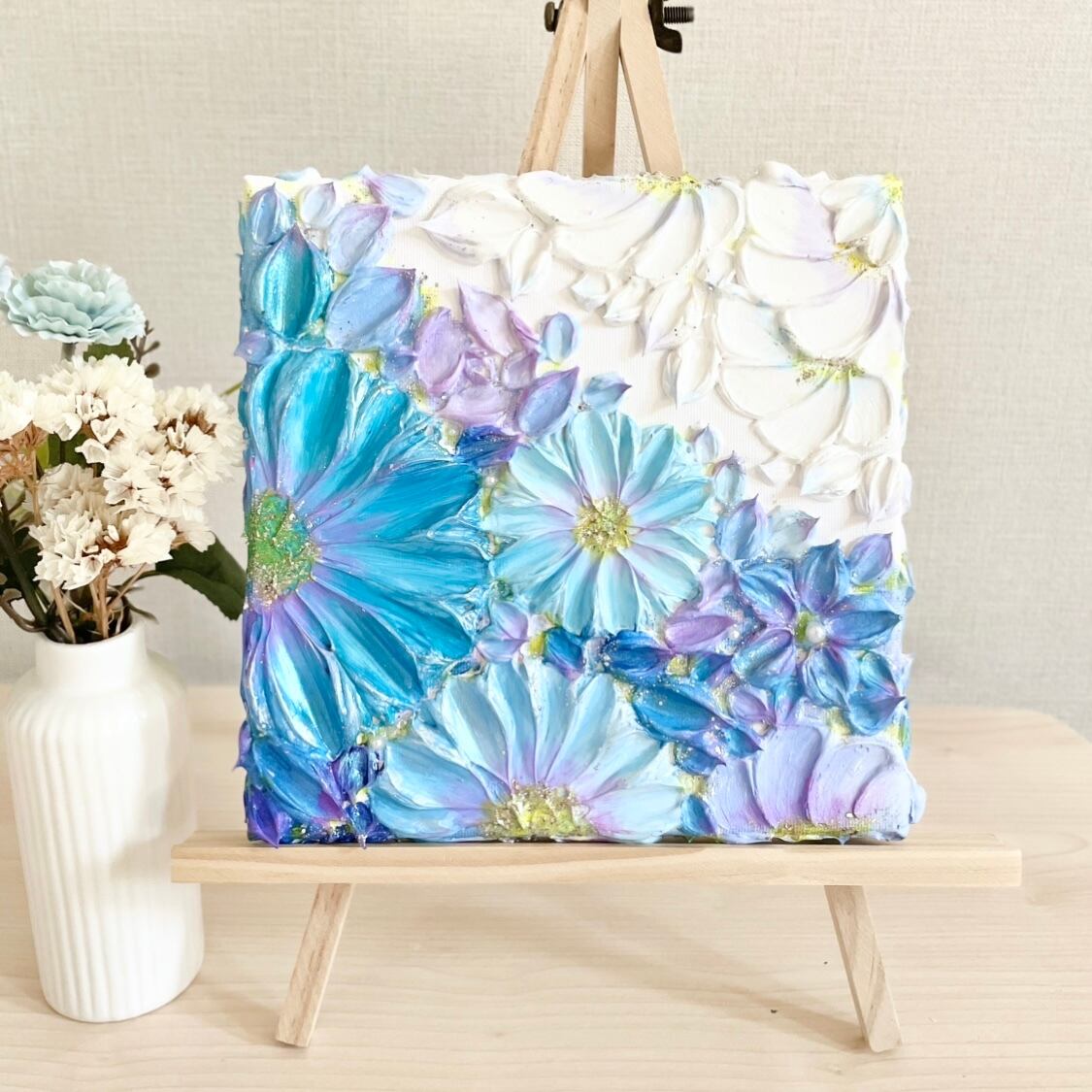 「花空」18㎝【初回限定価格】 花のテクスチャーアート 空のアート 壁掛けインテリア