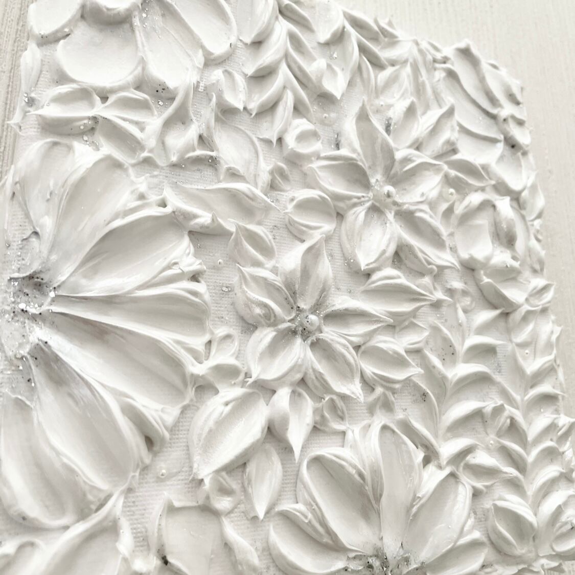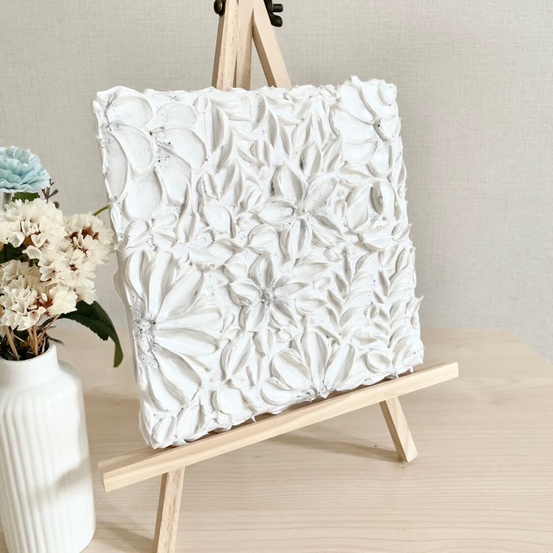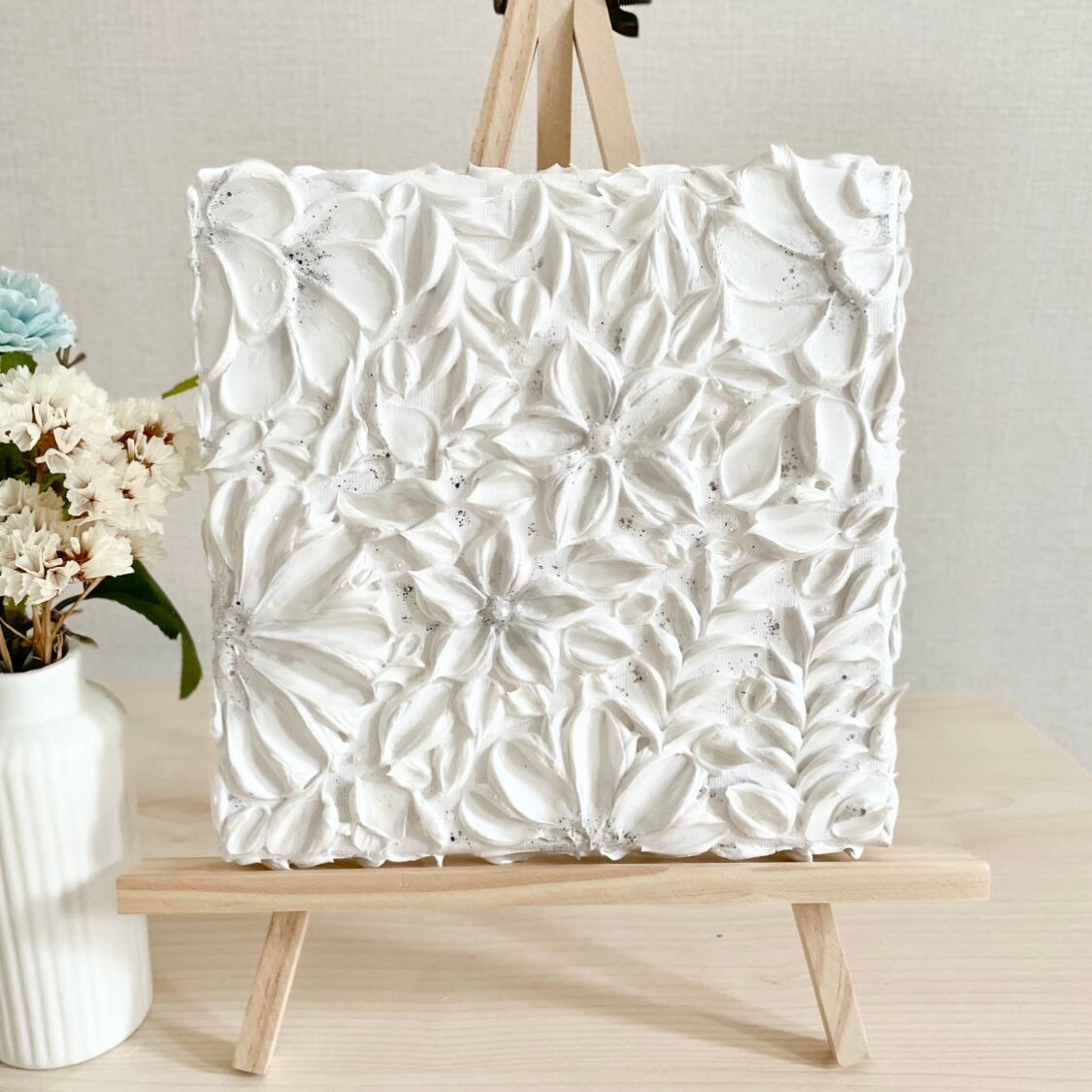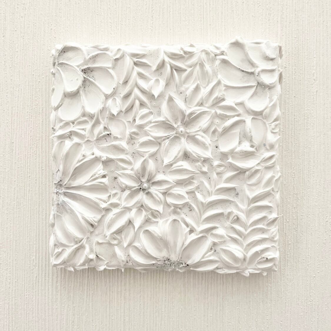 「純白の光庭」18㎝ 花のテクスチャーアート ホワイトインテリア 壁掛けインテリア 北欧インテリア